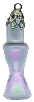 Fill the bottle with gold, gems or whatever, then apply clear epoxy to the stopper placing it into the top of the bottle. Then add the bell cap with a little more epoxy. Let dry and add the jump-ring. The stopper and bell cap may be done in two steps by letting the stopper dry or in one step.